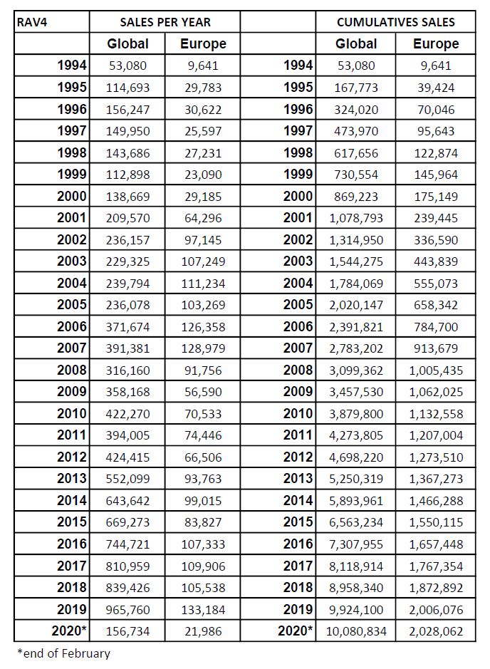 RAV4 a fost în 2019 cel mai bine vândut SUV din Lume și a patra cea mai bine vândută mașină – autoturism, de pe Pământ; cea mai mare piață pentru RAV este America de Nord, fiind urmată de Europa și China.