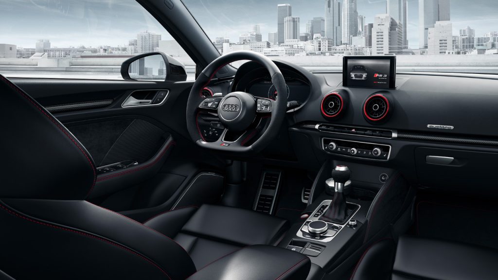 Exteriorul aduce modificările implementate pe A3 facelift ce includ o parte frontală subtil redesenată împreună cu posibilitatea optării pentru farui Matrix LED, precum și un difuzor spate ce face figură frumoasă cu noile stopuri LED. La interior și-a făcut apariția Audi Virtual Cockpit cu o grafică specială pentru RS3 ce pune turometrul în centru, iar pe lateral ai indicatori de cuplu, forțe G și presiunea în pneuri. Când transmisia este în modul manual, apare o gradație ce te îndeamnă să schimbi treapta atunci când te apropii de turația maximă. Scaunele au fost schimbate cu unele mai conturate, sistemul de infotainment Audi MMI a fost updatat, iar la capitolul siguranță a fost adăugat un nou sistem de urgență ce frânează mașina la nevoie.