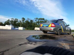 Cu câteva sute de metri înainte de locul faptei, mașina de Poliție trage pe dreapta. Să le dau banii, cică. Și ei să-mi dea actele. Bun, facem schimbul de prizonieri pe marginea unui DN ucrainean. Îi dau grivnele, el îmi da actele lui Predoi. Le verific, sunt toate. Apoi e ale mele. Le verific, pașaport, talon și atât. Permisul? Nu-i! Cum, mă, nu-i? Că nu m-am tras singur pe dreapta, voi l-ați luat. Se panichează instant amândoi. Să iei și șpagă și să pierzi permisul unui străin nu e tocmai OK. Pe marginea unui drum spart din Ucraina, într-o Lada obosită de Poliție, doi agenți se scotocesc de zor prin buzunare, caută pe sub banchetă, răsfoiesc prin acte și transpiră de emoție. Cinci minute a durat căutarea și permisul apare. Era căzut sub scaun. Mă lasă lângă Predoi și pleacă cu prada. Ciudată experiență! Ce putem face? Aie e, îi explic lui Predoi ce gaură în buget avem și râdem. Ce să mai facem acum? Măcar să fie asta singura pagubă din această tură.