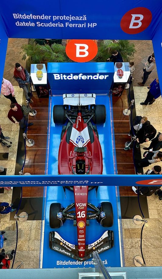 Compania românească Bitdefender, care tocmai a împlinit 24 de ani, este din 2022 partener oficial de securitate cibernetică al Scuderiei Ferrari. În spirit aniversar, a expus temporar o mașină la sediul central din Șoseaua Orhideelor, iar de astăzi până pe 23 noiembrie o poți vedea la Băneasa Shopping City.