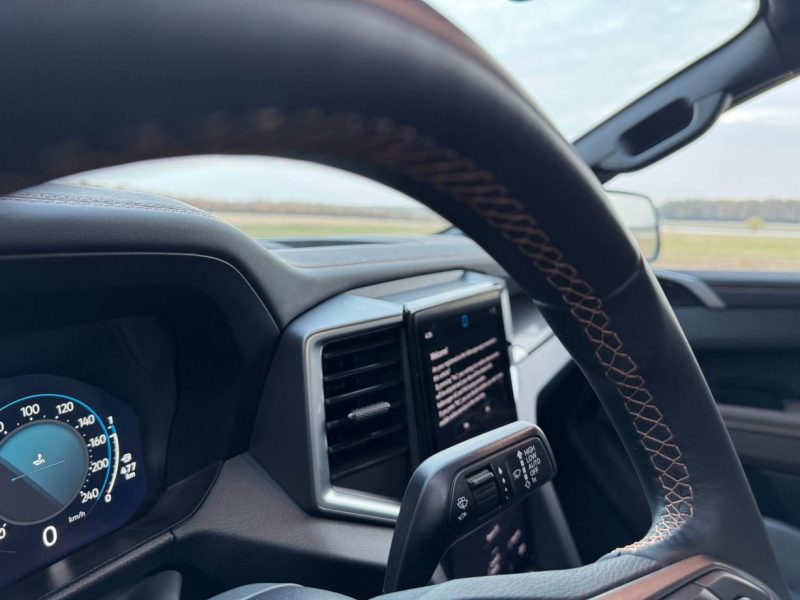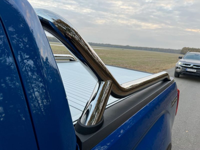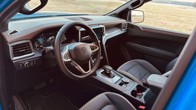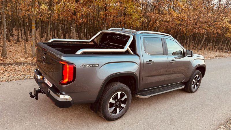 Vârful de gamă este Amarok Aventura, iar acesta e făcut să atragă priviri și să cucerească inimi: jantele au 20″ în diametru, bena primește un „sports bar” (de toată frumusețea), iar la capitolul tehnologie primești tot ce are mai bun de oferit Volkswagen pe Amarok. N-o să stau să le enumăr pe toate, dar e bine să știi că noul Amarok are 30 de sisteme noi de asistență, dintre care 20 sunt noi pe acest model.