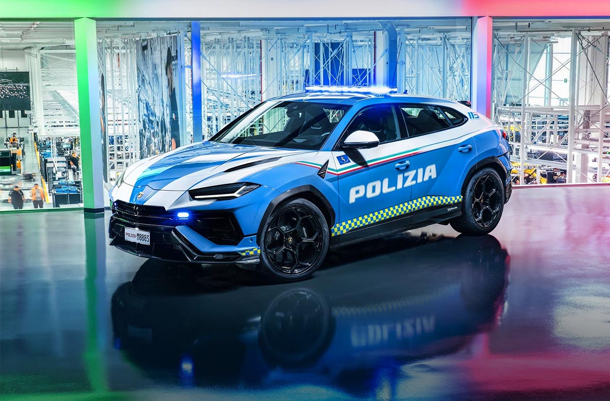 Un Urus Performante a fost echipat de tehnicienii Lamborghini de la Sant’Agata Bolognese, conform specificațiilor poliției. Țineți-vă bine…