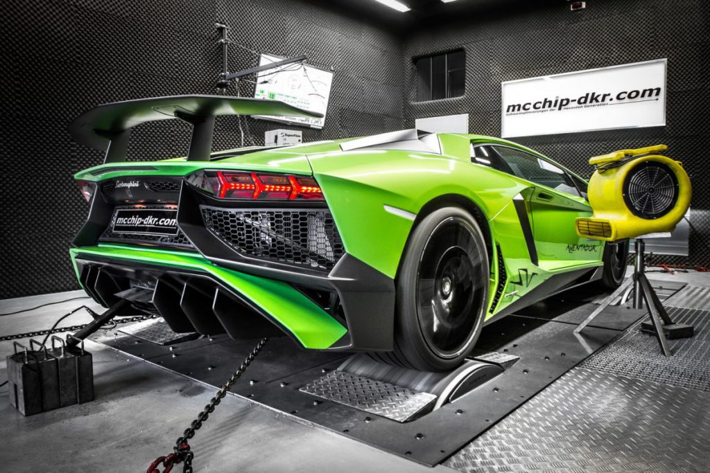 Tunerul cu nume de burger, MCChip DKR a luat de exemplu Lamborghini Aventador SV și i-a umflat motorul V12 de 6.5 litri cu 42 CP și 41 Nm. Asta înseamnă că supercarul tunat are acum 792 CP și 731 Nm cuplu motor maxim! Asta înseamnă că accelerația 0-100 scade acum de la 2.8 secunde la 2.6 iar această scădere impresonantă de 0,2 secunde costă… 12.000 euro! Nu contează foarte mult pentru cineva care dă vreo 450.000 euro pe un Aventador SV de serie, nu?