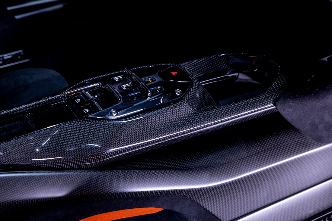 Discuri noi, plăcuțe noi, sistem eficientizat, asta înseamnă că SF 90 XX oprește de la 200 de km/h în 108 metri. Este genul de performanță care pune la treabă centurile în mai multe puncte de prindere, la fel cum scaunele gândite integral din carbon sunt puse la încercare de fiecare dată când iei viraje cu mașina asta. Îmi pot imagina cum îți vine să-ți verși mațele pe bord când o conduci, mai ales că citesc ce scrie în comunicatul de presă despre „vehicle dynamics” și văd că se completează perfect cu ce mi-au zis inginerii la prezentarea mașinii.