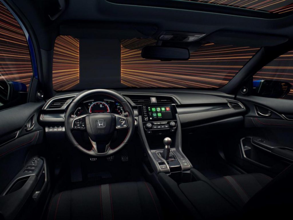 La interior găsim cusături roșii pe scaune, volan, schimbător sau fețele de uși, dar și un pedalier din aluminiu perforat. Mașina va veni destul de dotată, ca orice Civic, aceasta va avea faruri full LED, sistem de infotainment compatibil cu Apple CarPlay și Android Auto, scaune față încălzite sau cameră de marșarier.