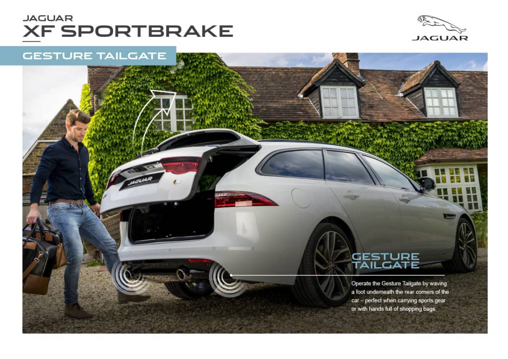 XF Sportbrake abundă de tehnologie, doar la prima vedere poți observa sistemul de purificare a aerului din cabină, sistemul de infotainment cu ecran de 10 inch, integrare smartphone, sistem audio Meridian, pornirea motorului de la distanță, hotspot Wi-Fi și o brățară pe post de cheie, asta în cazul în care ai obiceiul de a pierde cheile.