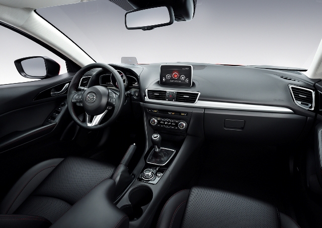 Cea mai interesantă dotare este fără îndoială MZD Connect, noul sistem de infotainment al mărcii disponibil în premieră pe Mazda3. El completează funcţiile de navigaţie şi de afişare SMS ale modelelor Mazda6 şi Mazda CX-5 cu un nou set de opţiuni. Pasagerii unei Mazda3 pot beneficia de acces în timp real la servicii deinfotainment prin intermediul aplicaţiei Aha (o platformă de tip cloud proiectată pentru utilizarea în maşină, care oferă acces la un conţinut variat, cu peste 30.000 de posturi radio, podcast-uri şi audio book-uri, precum şi posibilitatea de conectare la Facebook şi Twitter, alături de servicii asociate localizării utilizatorului) şi al touchscreenului cu diagonala de șapte inch, amplasat pe consola centrală.