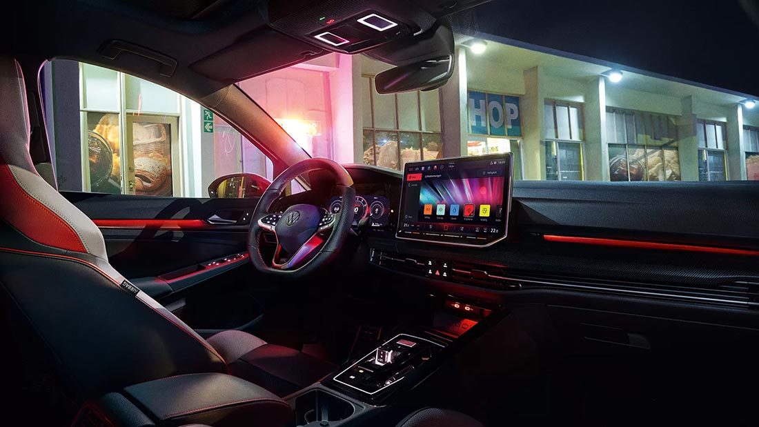 Sigur că vedem și modificări în față și în spate, la spoilere și blocurile optice. Vedem sigla luminată pe grilă, logouri GTI noi – retro, un acoperiș panoramic cu deschidere (opțional) pe jumătate din plafon și jantele noi, numite „Richmond”. În interior vedem detaliile clasice, dar și scaune ajustate, cu tetiere integrate și un display nou, de 12,9 inch (32,7 cm), care afișează comenzile unui soft (teoretic) îmbunătățit. Lumini ambientale, volan nou, head-up display cu proiectare pe parbriz, bord digital hi-res de 26 cm și un sistem Harman Kardon de 480W. Plus spațiul decent și portbagajul pe care deja le știm, alături de funcțiile pentru acces facil.