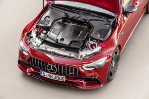 Noua intrare în gamă se face cu modelul AMG GT 43 4MATIC+ ce folosește același propulsor mild-hybrid de pe CLS 53 compus dintr-o unitate turbo cu șase cilindri în linie de trei litri ce produce în cazul de față 367 CP și 500 Nm, precum și un starter-alternator montat între transmisie și motor ce plusează încă 22 CP și 250 Nm la nevoie și furnizează curent către sistemul electric de 48V al mașinii. Puterea ajunge la toate roțile prin intermediul transmisiei automate cu nouă rapoarte AMG SPEEDSHIFT TCT (un singur ambreiaj, nu e cu convertizor de cuplu) și a tracțiunii integrale 4MATIC+ oferite în standard. Pentru a elimina turbo-lag-ul, AMG a montat și un compresor electric ce funcționează la turații scăzute.