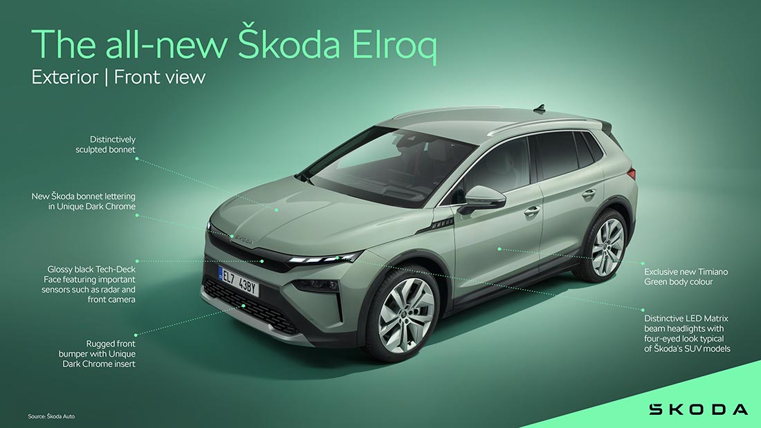 „Elroq este o piatră de hotar în portofoliul nostru BEV și primul dintre cele șase noi modele complet electrice care se bazează pe succesul modelelor Enyaq și Enyaq Coupé. Chiar și prima privire asupra noului său „Modern Solid Design” arată că această mașină este ceva nou, echilibrul perfect între dimensiune, spațiu și mobilitate electrică pentru oraș și nu numai.” – Klaus Zellmer, CEO Škoda Auto