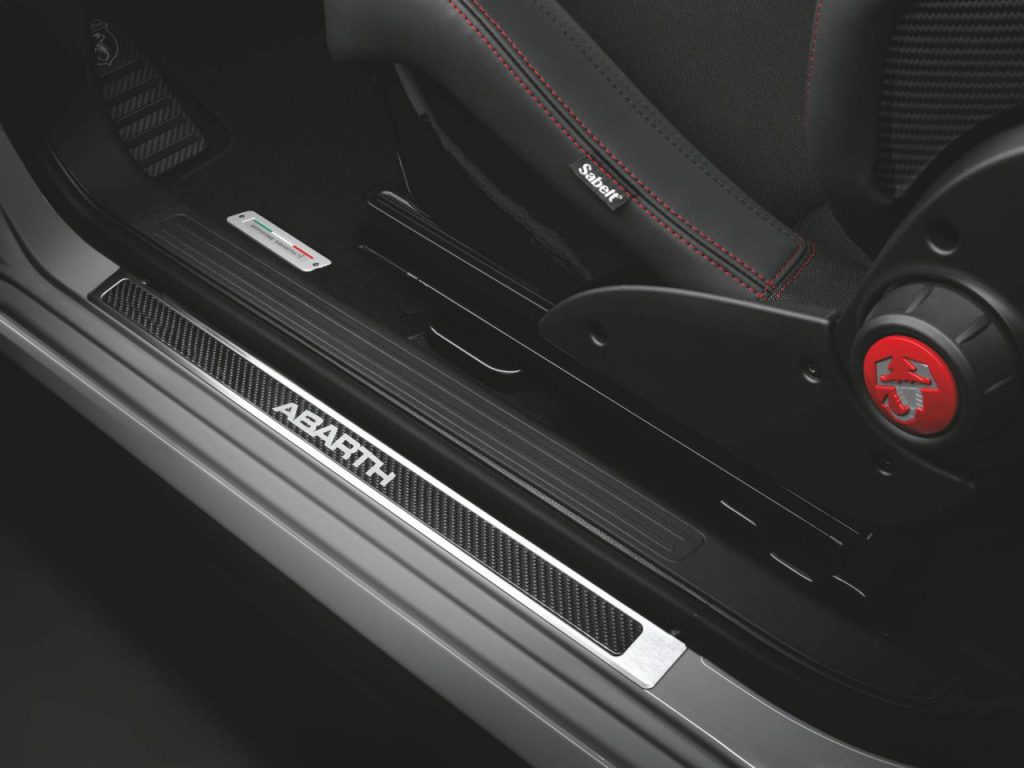 Alte detalii ce diferențiază un esseesse de un 595 obișnuit sunt jantele Supersport de 17″, dungile laterale Abart, oglinzile laterale, embelemele esseesse, scaunele Sabelt 70 cu spătar din fibră de carbon sau pedalele din carbon. Eu le-aș pune folie de protecție ca să nu se zgârie.