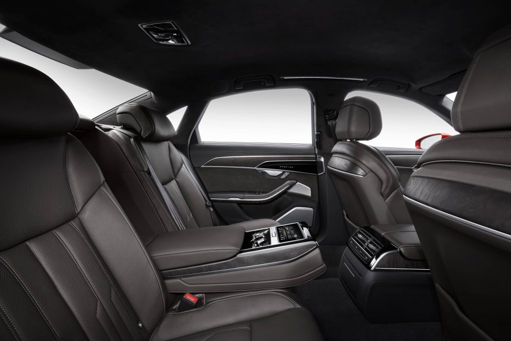 Și cum vorbim despre o limuzină de lux, nu putem omite confortul ce vine în primul rând cu mai mult spațiu. Apoi ne putem referi la mânerele de uși electrice, scaunele noi din piele “extra-moale” (îi credem pe cuvânt), funcție de masaj sau la scaunul de relaxare din spatele lui A8-L ce vine chiar și cu încălzire și masaj pentru tălpi. Tot din spate se pot controla majoritatea funcțiilor mașinii, printre care și luminile de citit Matrix LED.
