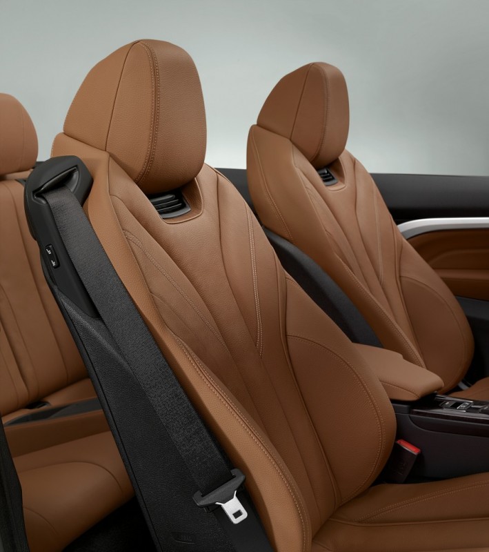 Designul interior nu diferă la modelul decapotabil față de cel Coupe dar scaunele au un desgin complet nou, anunță BMW iar centurile de siguranță integrate în scaune sunt oferite în premieră în segmentul Seriei 4. Ca și la restul modelelor BMW, patru linii de echipare sunt oferite pentru 4 Convertible: Sport, Modern, Luxury și M Sport. La acestea se adaugă și nivelul standard de echipare, desigur.