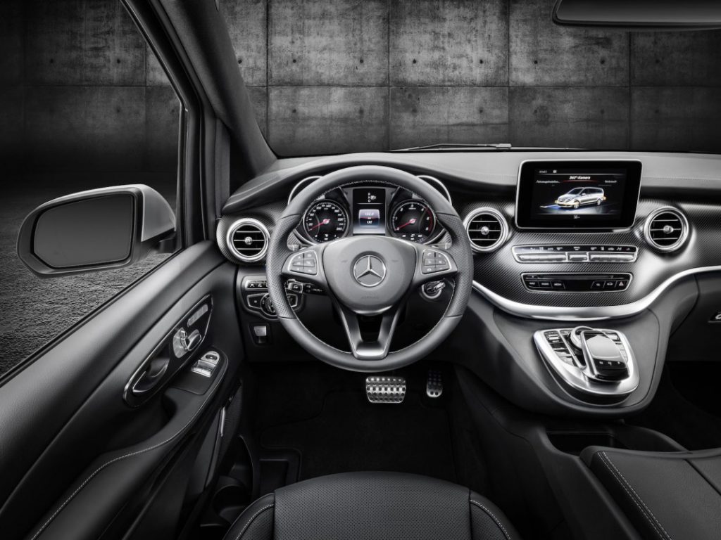 Una din premierele Mercedes-Benz de la Frankfurt din această toamnă este o premieră pentru divizia de van-uri. Pachet AMG Line pentru noua Clasă V: se va putea comanda pe mașini începând de la sfârșitul lui 2015 și va aduce pe mașină spoilere noi, praguri redesenate și jante din aliaj ușor cu diametrul de 19 inch.