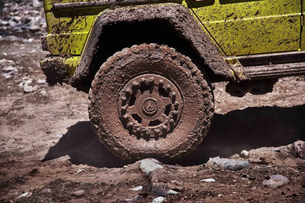 Suspensia este totul la acest G500 de 422 CP (din motorul V8 biturbo de patru litri): fiecare roată are câte două arcuri/ amortizoare. Câte unul dintre acestea lucrează convențional iar al doilea poate fi setat electronic de la confort la sport în 15 milisecunde. Garda la sol este fabuloasă – 45 cm. Sper ca într-o zi să-l văd pe Giurgea cum încearcă să-mi explice de la volan de ce a zis Mercedes-Benz că bestia asta se simte la condus ca „o mașină sport”.
