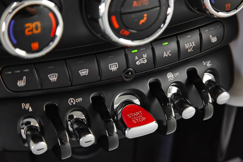 Pe coloana de direcție, în spatele volanului, ghici ce… apare un instrumentar de bord complet. Păi ce, nu așa vor clienții, în spatele volanului să vadă viteza și turometrul?! Eee! Și pentru că tot vorbim de clienți, ei vor comenzile geamurilor pe uși. Așa că MINI le are de acum, acolo, pe uși. Și vor comenzile luminilor de ceață lângă volan astfel că ele zboară de pe consola centrală fix acolo unde vrea clientul. Pe consola centrală, în dreptul comutatoarelor tip „switch” de avion rămân doar comenzi plictisitoare cum ar fi climatizarea, start/ stop, DSC… scaune încălzite… Singura veste bună este că cel mai interesant „switch” devine cel roșu de pornire/ oprire a motorului iar cheia este din standard echipată cu funcție keyless, nu mai trebuie introdusă în vreun loc pentru ca mașina să poată porni apoi din buton. Acum din switch, desigur.