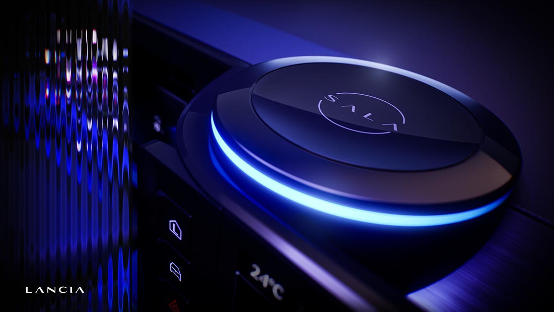 • Cele trei imagini publicate până acum de Lancia ne arată „măsuța” (unul dintre detaliile la care a contribuit Cassina), partea frontală (cu reinterpretarea grilei istorice prin trei „raze de lumină” și caracterele noi ale brandului), interfața de control a sistemului infotainment S.A.L.A (Sound Air Light Augmentation – un sistem de control complet personalizabil despre care Lancia spune că este inovator și crucial în crearea unei experiențe unice la bordul mașinii).