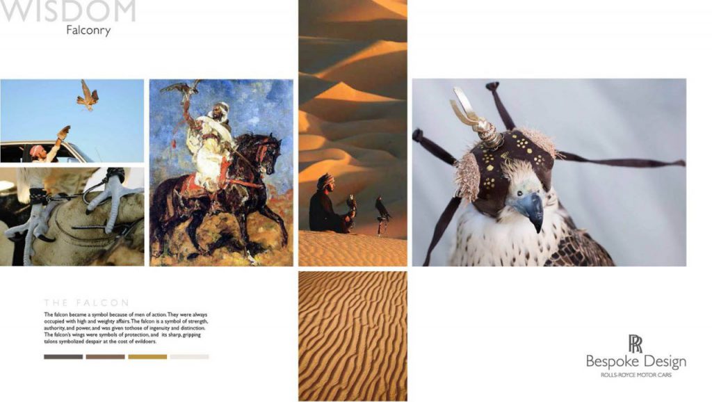 - Unul din cele două Wraith-uri are ca inspirație vânătoarea cu șoimi cu ale sale finisașe aurii și tapițeria din piele roșie-brună.
