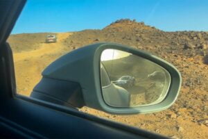 Eu n-am avut parte nici de arătură în mașina asta, nici de drum forestier, ci de deșert cu pietriș și dune de nisip – adică exact de locul în care te poți juca cu ea fără grijă. Sigur că o gropă luată cu prea mult entuziasm poate rupe suspensia și aici. Dar totuși nisipul e mai tolerant cu avântul, neștiința și neghiobiile deopotrivă – de unde și locul ideal pentru a prezenta lumii capacitățile unei mașini extraordinare prin intermediul unor jurnaliști-șoferi ordinari, ca mine.