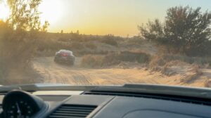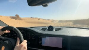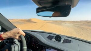 Mașina are 16,1° unghi de atac, 18,3° unghi de degajare și 19° unghi rampă, așa că poți aborda chiar și niște ravene, treceri prin vad sau cine știe ce urcușuri mai dificile, dar secretul ei nu stă în urcușuri lente prin locuri dure prin care abia de mergi în picioare (pentru asta mai repede cauți un Landcruiser, un Defender sau un Wrangler). Secretul lui 911 Dakar e viteza cu care poate merge pe drumuri proaste, prin terenuri cu dificultate medie sau, cazul nostru, deșert și dune.