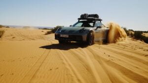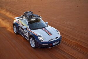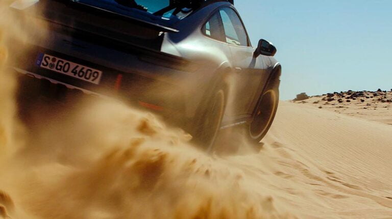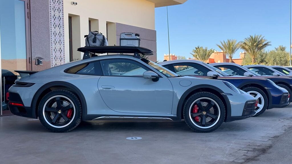 Merge de tururi pe circuit? Perfect. Există și anvelope opționale pentru asfalt, dar chiar și cu anvelopele off-road spune Porsche că se descurcă foarte bine. (Pirelli a reproiectat anvelopele Scorpion special pentru 911 Dakar și echipa de dezvoltare a fost atât de mulțumită de rezultate pe toate suprafețele, încât a decis să le livreze standard, nu opțional cum era planificat inițial.)