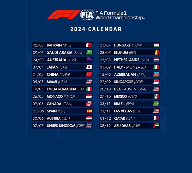 Calendarul FIA Formula 1 pentru 2024 are 24 de Mari Premii