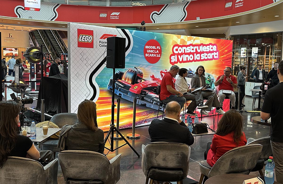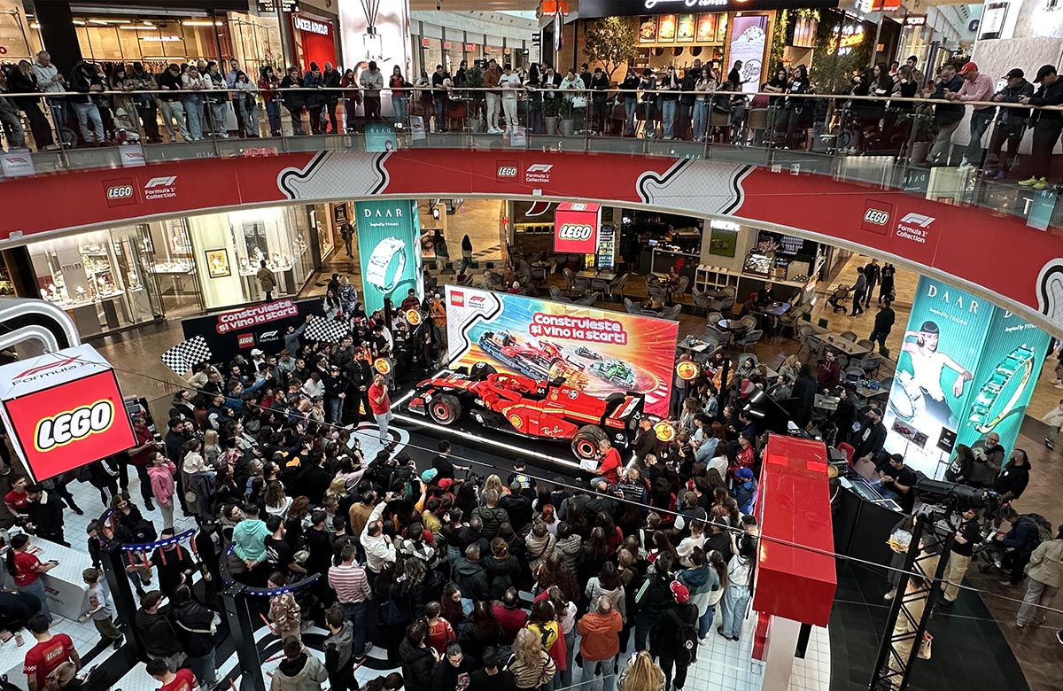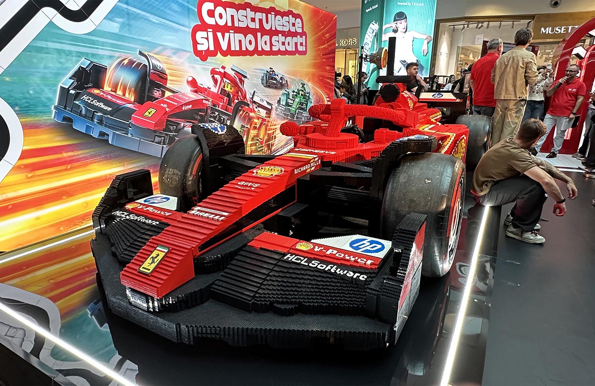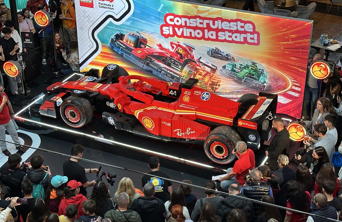 Hai că e petrecere roșie la Băneasa Shopping City: LEGO a dezvelit azi un „bolid” Ferrari la scară 1:1, făcut din peste 400.000 de piese.