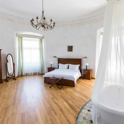 Cum vrei să-ți petreci șederea aici, asta ține doar de tine. Poți să deguști gama de vinuri Jidvei — proprietarii actuali ai acestui domeniu și ai castelului Bethlen-Haller — și să te delectezi cu bucatele locului, preparate folosind ingrediente locale, fie că vorbim de lactate, carne, ouă sau legume. (Restaurantul este aprovizionat de la ferma Jidvei.)