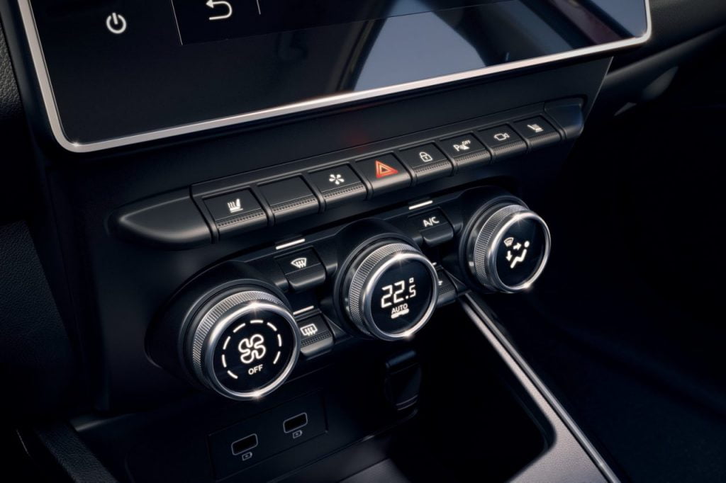 Surprizele vin la interior, acolo unde Arkana are câteva elemente preluate de la Dacia Duster, semn că Arkana nu se dorește a fi un Kadjar premium, ci un SUV-coupe mai de buget. Ceasurile de bord – Duster, volanul – Duster, mai puțin cele două spițe din partea inferioară, butoanele sistemului de climatizare – Duster.